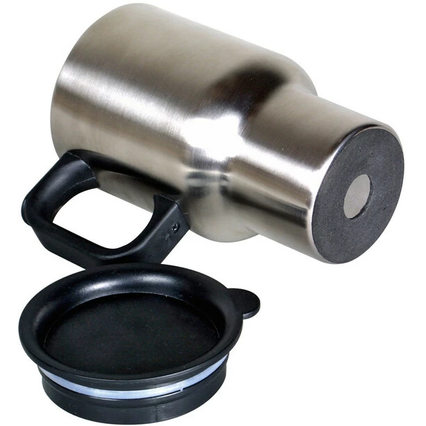An ‘Auto-Beaker’ in the Relags stainless steel thermobeaker series. An attractive, brushed steel finish, twin-walled with insulation enhancing lid. Drinks stay longer warm – or cold. Nothing can be spilt and the contents are protected against insects or other unwanted environmental influences. The narrowed base has a slip-free rubber surface and fits all normal car drink holders.