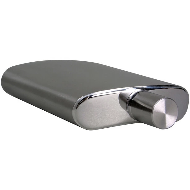 An exclusive flask of brushed stainless steel with polished ‘shoulders’. A simple but really modern design. Screw cap.
