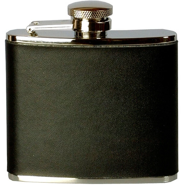 Stainless steel flask with attractive, gripable leather jacket and fixed screw cap.