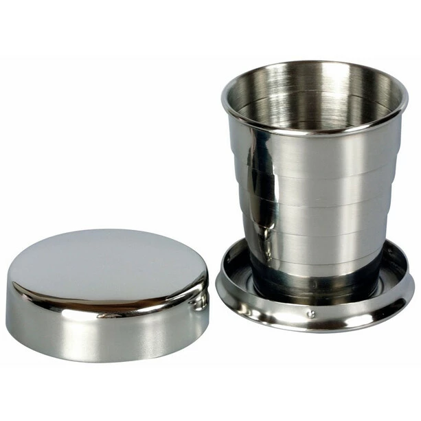 Telescopic cup made of stainless steel. Packed in small bags, it fits into any bag or backpack and is therefore the ideal companion for hiking or picnics. The mug is also an ideal complement to thermos flasks without drinking vessel.