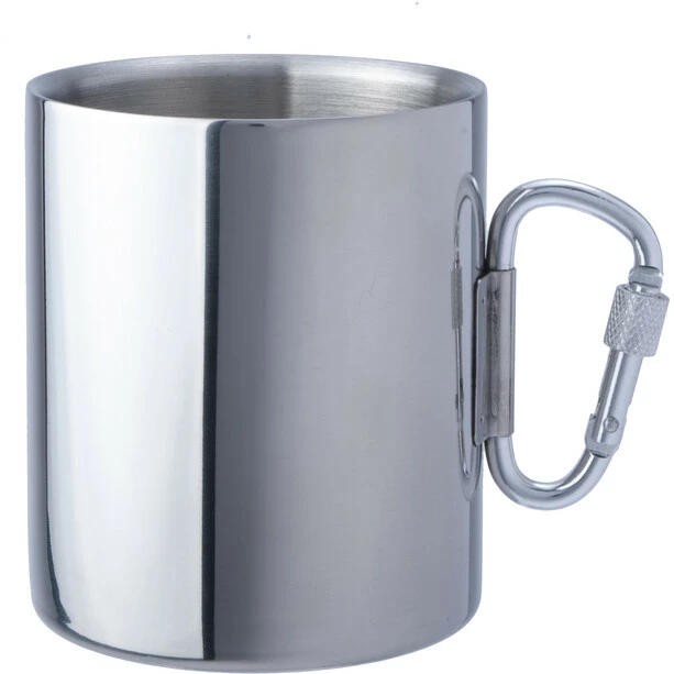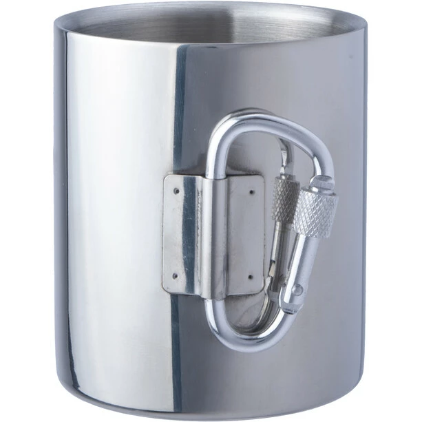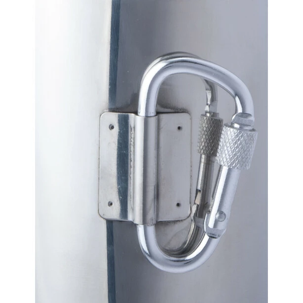 Sturdy, double-walled thermo cup made of good 18/8 stainless steel. The handle is designed as a carabiner that can be securely attached almost anywhere by means of a screw lock and is also foldable. Small drinking or iso bottles fit into the cup to save space. This mug offers a variety of uses and is also a sure gift that always arrives.