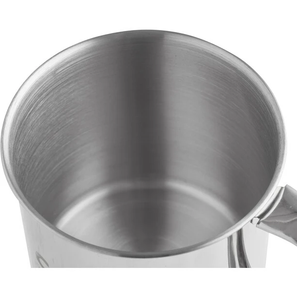 This practical, single-walled cup made of stainless steel is the ideal vessel for your drinks and meals. It keeps hot drinks hot and cold drinks cold. In addition, you can also eat soups and other dishes from it. The carefully rounded rim makes drinking a pleasure. Unlike other metal cups, the handle hardly heats up and after use, you can easily hang the cup on your backpack until the next time.