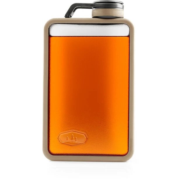Your favorite beverage can now go anywhere in the Boulder Flask. Includes graduations for measuring and can take any fall with the sleek bumper flask. The Boulder 6 Flask holds 6 fl oz, has a shatter-resistant body with bumper, graduations, and a hinged silicone cap making it impossible to misplace.