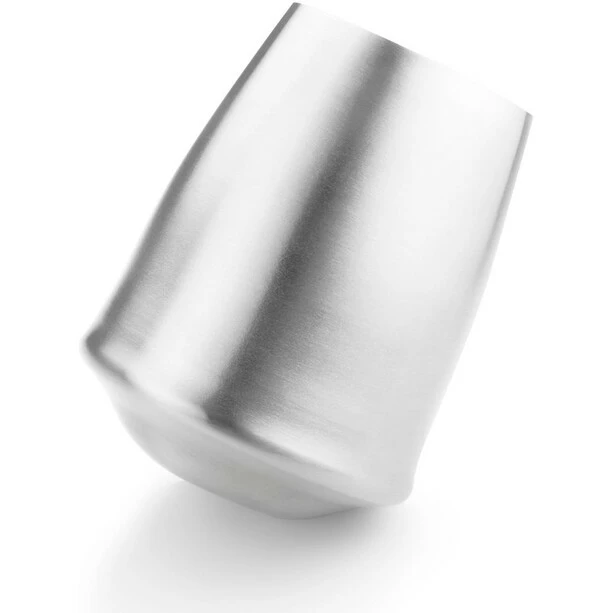 An almost indestructible brushed stainless steel cup. When filled, these bulb-shaped cups have a centre of gravity so low that they stay stable – even on uneven ground or a wobbly table. So hardly anything goes wrong and drinks stay warm even under adverse circumstances.