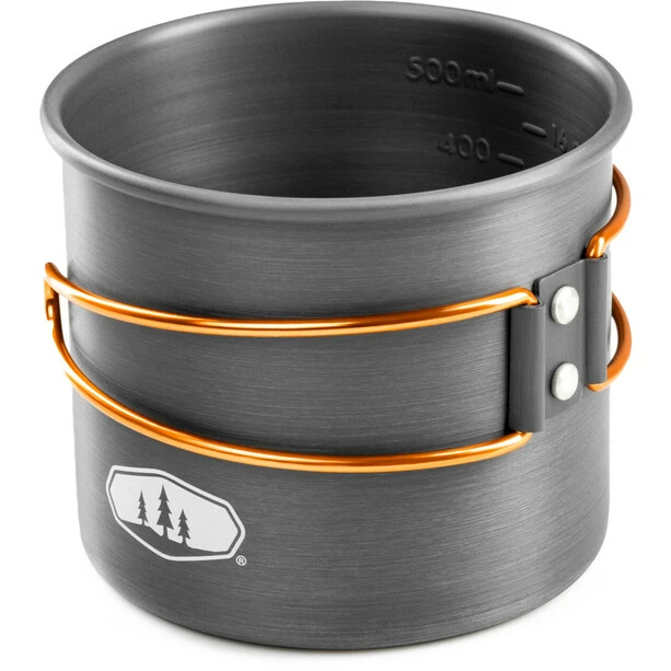 Cup made of aluminium. The handle can be folded away after use to save space.