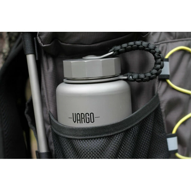 The ultimate Backcountry Water Bottle. Vargo set out to build a better water bottle – one that’s won’t leach or corrode, works with common water filters, and offers multifunction versatility. The patent pending Titanium Para-Bottle features 7 feet of integrated replaceable 550 paracord, individually machined geometric shaped lid, and pure titanium construction. Fits most standard backcountry water filters and accessories. Narrow profile for better fit in hands and water bottle pockets. Your search for the ultimate water bottle ends here!